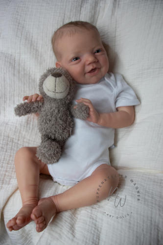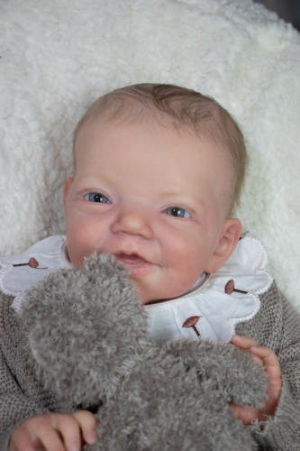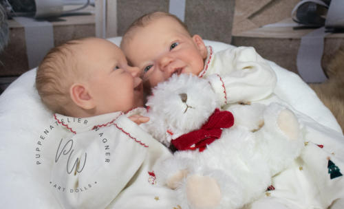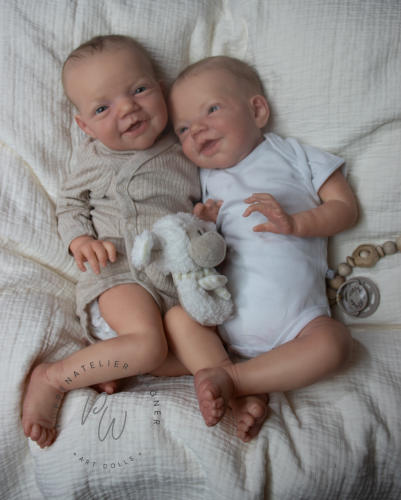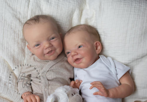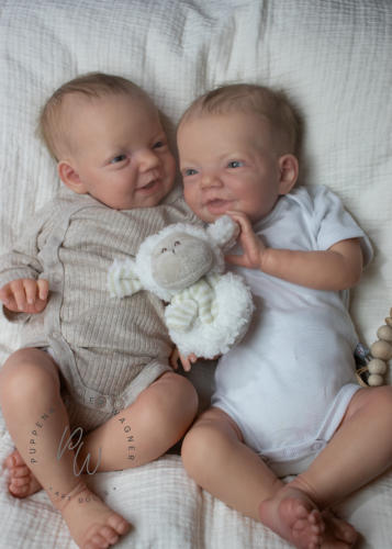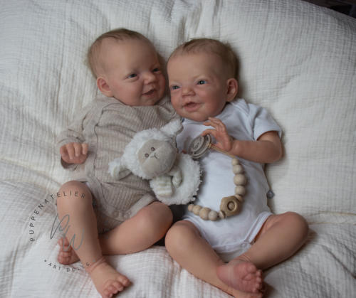 Die beiden Charlies wurden mit Genesis Farben in vielen Schichten gefärbtund anschließend mit Genesis versiegelt. Ihre Färbung ist zart mit vielen Details.Die Nägelchen und Lippen wurden mit Lack versiegelt.Sie haben ein feines Rooting mit Kidsmohair,blaue Lauschaer Glasaugen.Ihre Arme und Beine sind lang (4/4). Zu Beiden gehört eine Bauchplatte, ein Zertifikat und ein Magnetschnuller Für weitere Fragen und Infos stehe ich gerne zur Verfügung.Je 945,- €